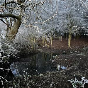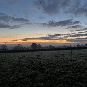 Our first few prolonged days of frost and low temperatures for this year have been late, but have produced some truly beautiful photos of Barby Meadow Woods. Most of the day was spent deep in mist but it cleared for a short while the sun started setting.